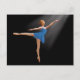 This lovely little ballerina presents a study in grace as she strikes a perfect arabesque in her blue costume. She looks wonderful on this customisable postcard.