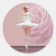 Ballerina in White with Pink Rose Classic Round Sticker