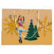 Ballerina New year. Beautiful design - ballet dancer lady, holiday tree with sparkling star and golden snowflakes. Original and sweet on gift bag.
