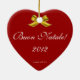 Buon Natale - Italian Merry Christmas, dancing ballerina holding a nutcracker double sided ceramic Christmas holiday ornament! The front of this lovely ornament features a holiday scene of a ballerina dancing in a ballroom and holding up a nutcracker. There are lovely decorated holiday trees just of to the sides, a pretty wreath, and two glowing candle sticks. The back is a lovely deep holiday red colour with a golden holiday bow on top and reads Buon Natale, or Merry Christmas in Italian language, in an elegant white lettering. Right below that you can enter in the current year! A most precious addition to any ornament collection! Classic holiday colours in shades of golds and reds! This is a lovely gift for Italian friends, family or someone who loves the nutcracker or ballet. Available in different sizes and shapes, other languages, and personalised with your name too. For other designs of holiday ballerina greeting cards and gifts please visit our shop!