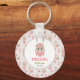 Lovely keychains for a ballerina girl birthday party, featuring cute ballerina bunny on a swing, with floral accents. This design is customizable and personalized - you can change the name and other text on this design. Pink and green tones.