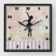 Ballerina Silhouette on Elegant Vintage Pattern Square Wall Clock