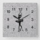 Ballerina Silhouette Silver Glitter Square Wall Clock
