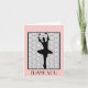 Ballet dance teacher appreciation card. Text on the front says thank you. Inside says: thank you for being such a wonderful teacher. You can customise the text to say whatever you wish. The design on the front of th card is a silhouette of a ballerina posing on the tips of her toes with her hands raised above her head. Surrounded by a lacy looking, black and white heart and flower shaped mandala pattern.