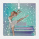 Ballerina & Teal Piano Background Glass Tree Decoration