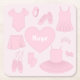 Ballet clothes with name paper coaster, light pink background. Customise the paper coaster with your special name or text, background colour among other options.