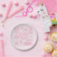 Ballet clothes with name paper plate, light pink background. Customise the paper plate with your special name or text, background colour among other options.