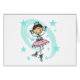 A blrown haired stick figure ballerina in a pink and aqua leotard and tutu with a stars and swirls aqua background on customisable T-shirts, bodysuits, mugs, magnets, tote bags, keychains, cards, and more.