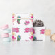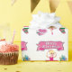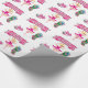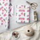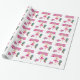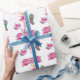 Little girl ballet dancer in pink with stocking and gift print Holiday Christmas gift wrapping paper. Text on banner says Merry Christmas