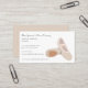 These custom business cards are perfect for promoting your ballet school or dance academy or private ballet lessons or instruction. They feature an illustration of beige or light tan ballet shoes so they're perfect for getting the word out about your classes for boys or girls. Black lettering is easy to read against the plain white background. The reverse side is a coordinating light tan colour.
