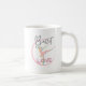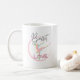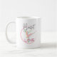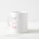 A cute coffee mug featuring a pink ballerina in an arabesque pose centred within an abstract pink circle. Text reads, "Ballet Love." Perfect for dancers, dance lovers, dance teachers, and dance students.