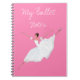 BALLET NOTEBOOK. BEAUTIFUL NOTEBOOK FOR DANCE ANNOTATIONS IN HOT PINK BACKGROUND. A BEAUTIFUL BALLERINA DRESSED IN A CLASSICAL WHITE TUTU WITH AMPLE FLUFFY SKIRT TAKING A GRAND JETE JUMP. A LOVELY GIFT FOR BALLET LOVERS. BALLET DRAWING BY MARCELA BLANCO