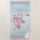Pink Ballet Shoes Design Beach Towel with customisable text.