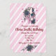 Pretty ballet shoes for your little ballerina accented with flowers and beads. A pink and white stripe background completes the ensemble.