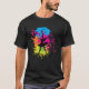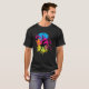 I give wanted to give this a 4 instead of a 5 because these Basic DARK T0shirts run unexpectedly SLIM or Narrow. Which is great if you do not have a potbelly, but I have a paunch. It isn't the shirt's fault that I've got a beer belly. The design and shirt itself is a quality cotton shirt. The color is more of a deep purple, but still a very pretty color. The Basic DARK T-shirts run a bit SLIMMER than the Basic Ts. The neck is a fraction narrower (or seems to be narrower) also. I'm a paunchy middle-aged woman and my neck is 12 inches (31cm) thick and the neckline fell about the same as in the photo of the man, and I had the desire to tug it a bit. So if you're a thick necked man or like loose shirts, be aware these are slimmer shirts. Once I get rid of my lockdown paunch it'll look great. The shirt washed well in cold water with no apparent bleeding. We don't have a dryer, so it hung dry. Did not shrink. Love the colors and the design. The design looks smaller on my shirt than it does on the model on-line. But still, it looks good on the shirt. The printing looks as it does on the model, just the size seems fractionally smaller. Washed garment in cold water, hung dry and design appeared unaffected.