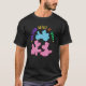 I give wanted to give this a 4 instead of a 5 because these Basic DARK T0shirts run unexpectedly SLIM or Narrow. Which is great if you do not have a potbelly, but I have a paunch. It isn't the shirt's fault that I've got a beer belly. The design and shirt itself is a quality cotton shirt. The color is more of a deep purple, but still a very pretty color. The Basic DARK T-shirts run a bit SLIMMER than the Basic Ts. The neck is a fraction narrower (or seems to be narrower) also. I'm a paunchy middle-aged woman and my neck is 12 inches (31cm) thick and the neckline fell about the same as in the photo of the man, and I had the desire to tug it a bit. So if you're a thick necked man or like loose shirts, be aware these are slimmer shirts. Once I get rid of my lockdown paunch it'll look great. The shirt washed well in cold water with no apparent bleeding. We don't have a dryer, so it hung dry. Did not shrink. Love the colors and the design. The design looks smaller on my shirt than it does on the model on-line. But still, it looks good on the shirt. The printing looks as it does on the model, just the size seems fractionally smaller. Washed garment in cold water, hung dry and design appeared unaffected.