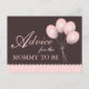 Adorable pink and blue balloons adorn this cute design for any baby shower theme. Add these adorable cards to each table at the shower for your guests to complete - every new mummy-to-be will surely appreciate little words of wisdom from other 'seasoned' moms! Gender neutral in pink, blue and rich chocolate brown.