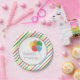 These colourful balloon-themed plates are perfect for a boy's, girl's, or gender neutral birthday party! It's a classic theme! © 2023 Tea Olive Co.