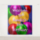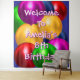 A fun and colourful birthday party backdrop with a rainbow of floating balloons. A great way to set the mood for a fun filled celebration.