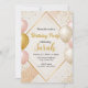 Add a touch of luxury and celebration to your special day with this stunning gold and blush birthday invitation! Featuring floating balloons, gold confetti, and a chic geometric frame, this design is perfect for milestone birthdays, sophisticated soirées, or stylish parties.