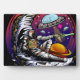 Original vector art of a astronaut having moon cheese and passing a slice to a alien. Created in vector.