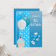 Sweet cupcake and white and blue balloons over blue background. Customise name and year.