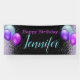 Chic girly birthday banner done in a horizontal layout, with graphics of mauve, purple and aqua balloons and faux glitter, on a black background. Aqua and pink coloured text is ready to personalise to read what you want. Great addition to any birthday party or just to wish your loved one a happy birthday.