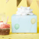 This cheerful wrapping paper design has pastel coloured balloons flying through a blue sky full of fluffy white clouds.