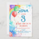 Each invitation is a work of art, featuring a playful arrangement of balloons in every hue of the rainbow, accompanied by a shower of confetti that adds an extra dose of excitement and fun. The lettering design is bold and eye-catching, ensuring that your invitation stands out and captures the attention of every guest.