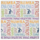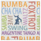 Ballroom dance fabric with words rumba, foxtrot, waltz, cha cha, samba tango, jive and swing.