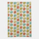 Illustrated balls of wool in polka dot pattern on colourful, quirky kitchen towel. .