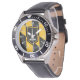 My husband loves the watch, he likes the dial, the graphics, the band, and it keeps perfect time.