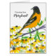 A "Greetings from Maryland" greeting card decorated with a Baltimore Oriole bird on a branch with yellow Black-Eyed Susans illustrated with ink and watercolor. Inspired by the state bird and state flower of Maryland. You can edit or remove the text to fit your needs.