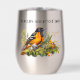 A beautiful, colourful bird image on the front and back of this stainless steel wine tumbler.