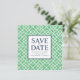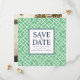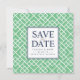 Announce your wedding in preppy Palm Beach style with our bamboo patterned save the date cards in green and navy. Unique square cards feature your wedding details (names, date and location) displayed in the centre on a white square with "save the date" in a mix of navy blue block and calligraphy script typefaces. A background pattern of white bamboo lattice on a preppy green background completes the look.