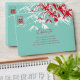 Oriental zen red, white and turquoise blue bamboo leaves with a simple minimalist frame double happiness symbol wedding envelope. An elegant and stylish chinese / asian / oriental themed wedding design which is modern, simple and classy.