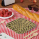 Features a bamboo pattern. Great for a pool party or luau!