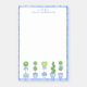 This chic post it note pad features 5 topiaries in a chinoiserie pots. The border around the edge is a blue bamboo frame. You can personalise with your name.