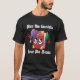 I give wanted to give this a 4 instead of a 5 because these Basic DARK T0shirts run unexpectedly SLIM or Narrow. Which is great if you do not have a potbelly, but I have a paunch. It isn't the shirt's fault that I've got a beer belly. The design and shirt itself is a quality cotton shirt. The color is more of a deep purple, but still a very pretty color. The Basic DARK T-shirts run a bit SLIMMER than the Basic Ts. The neck is a fraction narrower (or seems to be narrower) also. I'm a paunchy middle-aged woman and my neck is 12 inches (31cm) thick and the neckline fell about the same as in the photo of the man, and I had the desire to tug it a bit. So if you're a thick necked man or like loose shirts, be aware these are slimmer shirts. Once I get rid of my lockdown paunch it'll look great. The shirt washed well in cold water with no apparent bleeding. We don't have a dryer, so it hung dry. Did not shrink. Love the colors and the design. The design looks smaller on my shirt than it does on the model on-line. But still, it looks good on the shirt. The printing looks as it does on the model, just the size seems fractionally smaller. Washed garment in cold water, hung dry and design appeared unaffected.