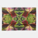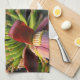 The original artwork on this Kitchen Towel was created from an original photograph of a banana flower. The photo has been repeated to form this tropical pattern. The colours are straight from nature, with an intricate background of yellow green, unripe bananas and the rich, dark reddish brown of the flower petals, called bracts, curving around in front. Beneath every layer lies an orderly row of little yellow-tipped fronds. These are the buds that eventually become bananas. The petals are a lighter, dusty pink colour as the layers unfold towards the heart of the flower.