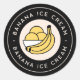 Banana ice cream fruit flavour nice cream scoops in a cup bowl illustration. Homemade recipe minimal black aesthetic round sticker circular label tag bundle pack set.