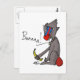 A postcard featuring a cartoon of a baboon holding a banana. Designed by Scarlett & Squid.