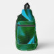 The leaves of a banana tree are huge. In the original photograph by ZoeSPEAK on this Sling Bag, we get a closeup view of the detail of the ribbing in the leaves as they curve around each other, with their beautifully rippled edges. The soft green colours change from a light yellow tint and an aqua green in the sunlight to a deeper bluish green in the shadows.