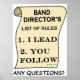 Band Director's List Of Rules: I Lead, You Follow! Any Questions? Could anything be simpler? See all our musical designs on on cups, mugs, tee shirts, sweatshirts, hats, and other gifts and clothing. Visit our TemperamentalMusician web site for more musical designs!href="http://www.temperamentalmusician.com">Visit our TemperamentalMusician web site for more musical designs!