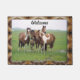 A group five Appaloosa brown and white horses standing together in a green field.With a baby colt.This floor mat has a abstract frame .The text and text colour can be change to any colour you want it to be with the custom tag.