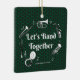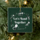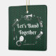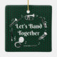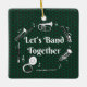Let's band together text surrounded by a circle of instruments and music notation is a musical twist on a common phrase and a funny gift design for concert and marching band musicians.