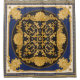 Bandana print on black and blue background, Gold chains and cables, Greek meander frieze, Baroque scrolls, Rococo sea shells and sapphire jewelry gem stones. Scarf, neckerchief, kerchief, carpet, rug