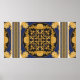 Bandanna print on black and blue background, Gold