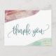 This banded gemstone mauve thank you postcard is perfect for a modern wedding. The beachy design features two stunning agate gemstones in light purple and turquoise with faux gold foil banding. Personalise the back of the postcard with your names, your return address, and a thank you message. Alternatively, leave the thank you message template section blank to hand write a thoughtful personalised note on each card after they arrive. These cards can be used for a wedding, bridal shower, or any special event.
