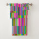 Bands of color--pink, blue, green, and others--make a colorful and beautiful bath towel set in rainbow colors. Modern, stylish, and unusual design.